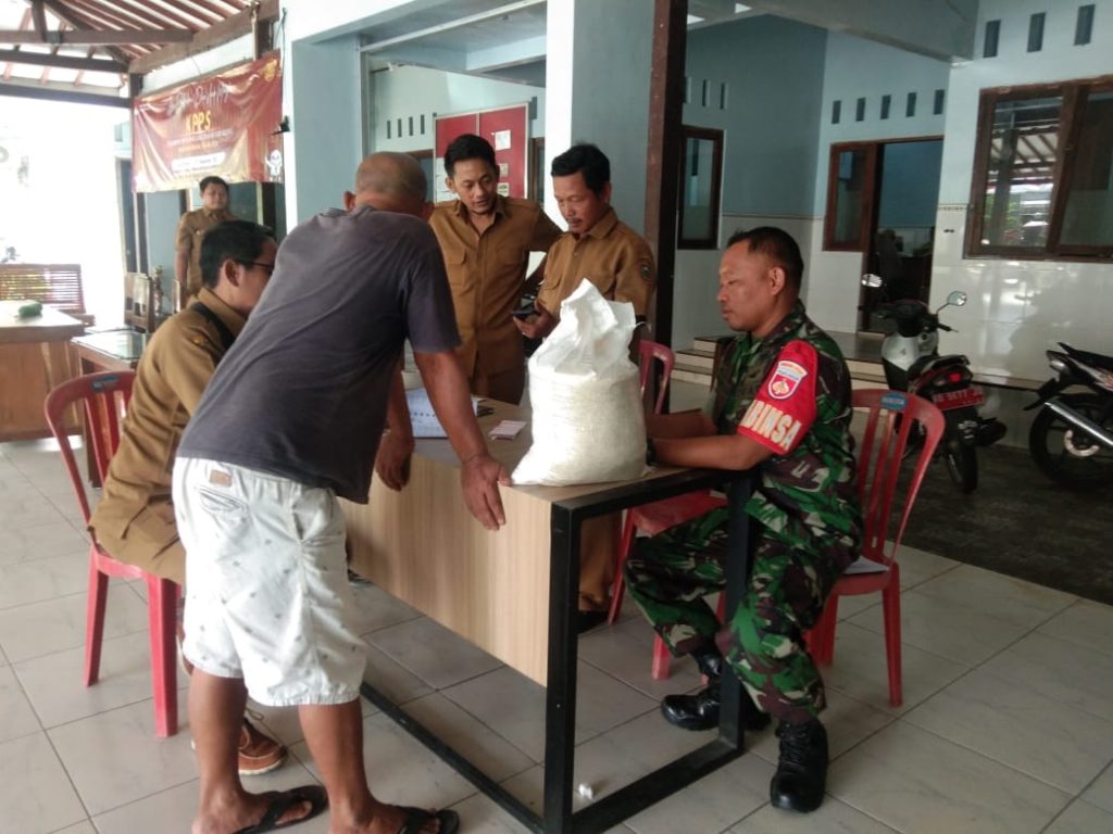 Babinsa Simo Ikut Pendampingan Pembangian Bantuan Beras Program Pemerintah