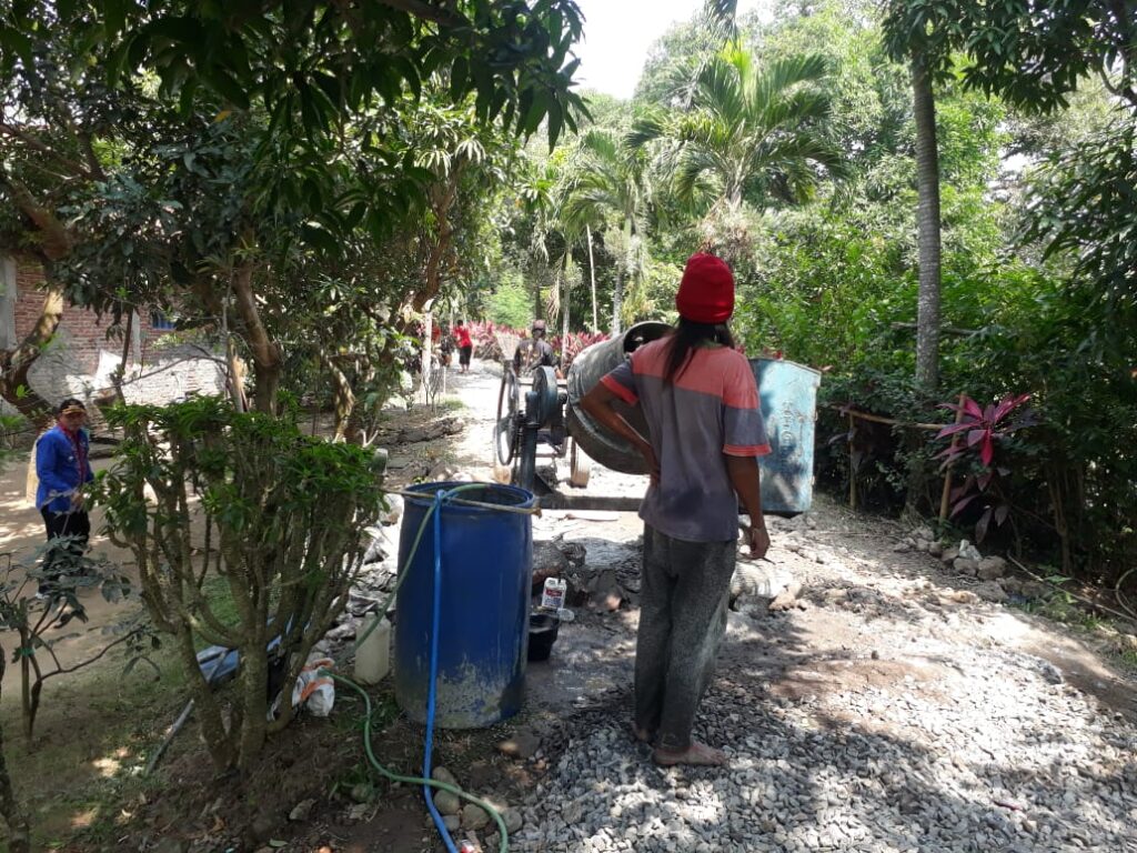 Pembangunan infrastruktur jalan Warga Desa Bangodua Kertasnya lndramayu dengan rabat beton 2,5m sepanjang 200m lebar 2,5m tinggi 15cm.