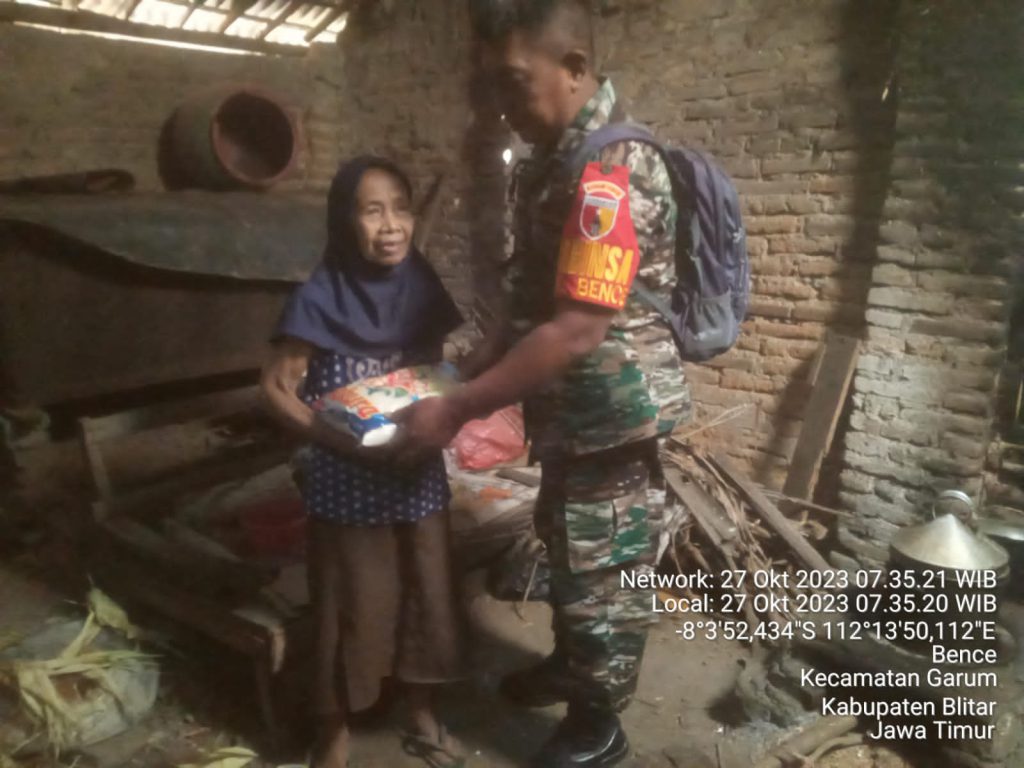 Babinsa Koramil Garum Berbagi Kebahagiaan Kepada Warga Kurang Mampu