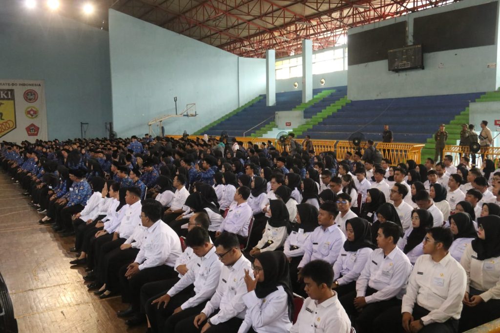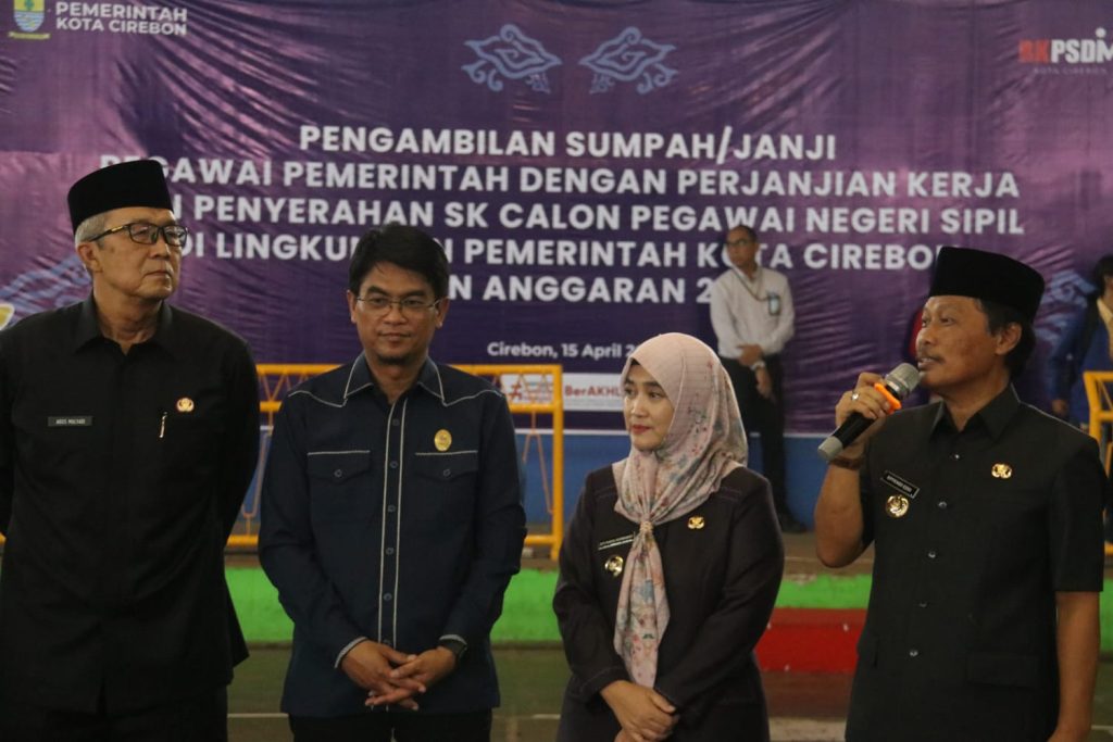 Pemerintah Daerah Kota Cirebon melalui Badan Kepegawaian dan Pengembangan Sumber Daya Manusia (BKPSDM) Kota Cirebon menggelar Pengambilan Sumpah/Janji dan Penyerahan Surat Keputusan (SK) Pengangkatan Pegawai Pemerintah dengan Perjanjian Kerja (PPPK) dan Calon Pegawai Negeri Sipil (CPNS) formasi tahun 2024, yang berlangsung di Sport Hall Bima, Selasa (15/4).