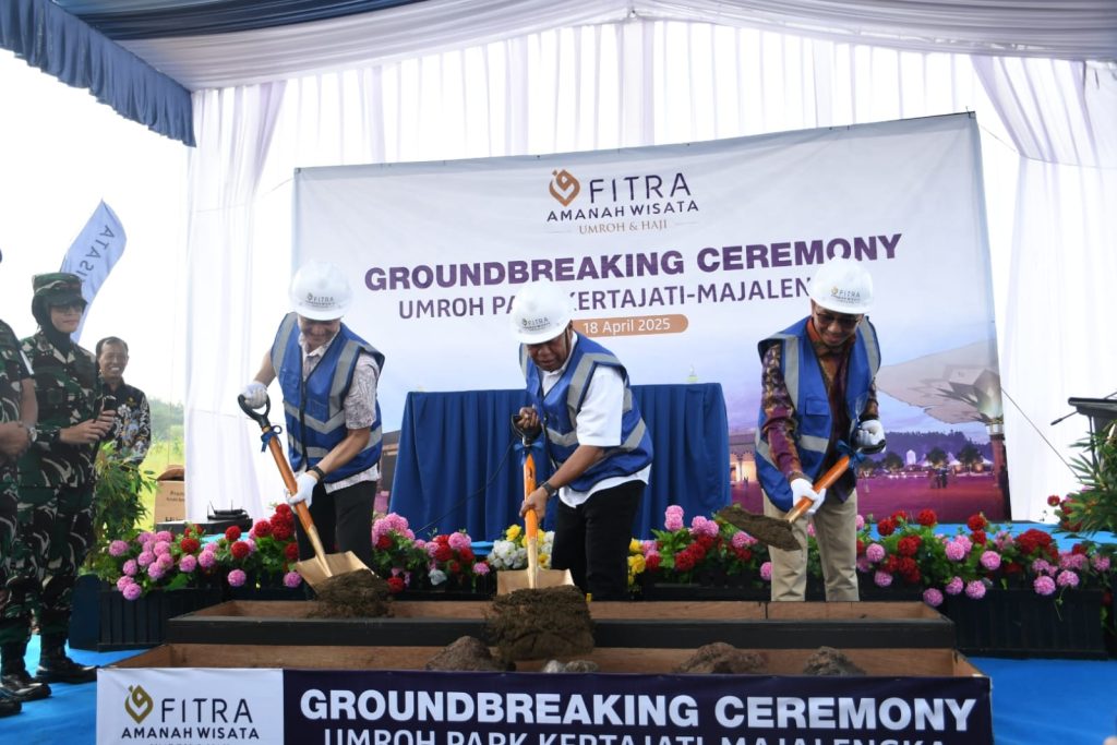 Bupati Majalengka, H. Eman Suherman secara langsung melakukan Groundbreaking pembangunan Umroh Park Fitra Amanah Wisata (FAW) yang berlokasi di Desa Palasah, Kecamatan Kertajati, Kabupaten Majalengka, pada Jum’at (18/4/2025).