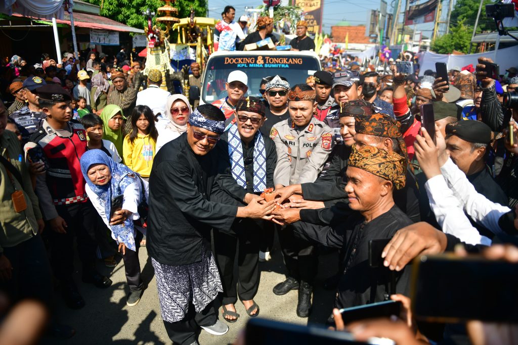 Kegiatan 2 tahun sekali yang menjadi bentuk rasa syukur atas limpahan hasil laut ini berlangsung semarak, dengan kehadiran Wakil Bupati Indramayu, Syaefudin, yang turut mengikuti prosesi larung kepala kerbau ke tengah laut.
