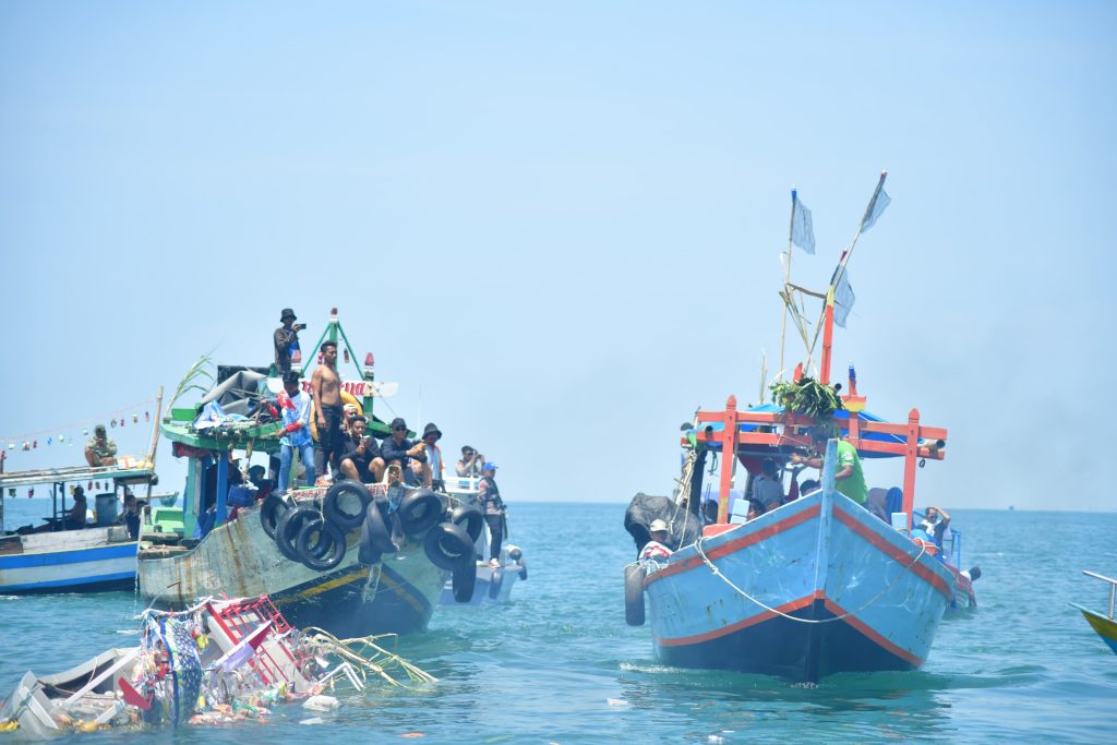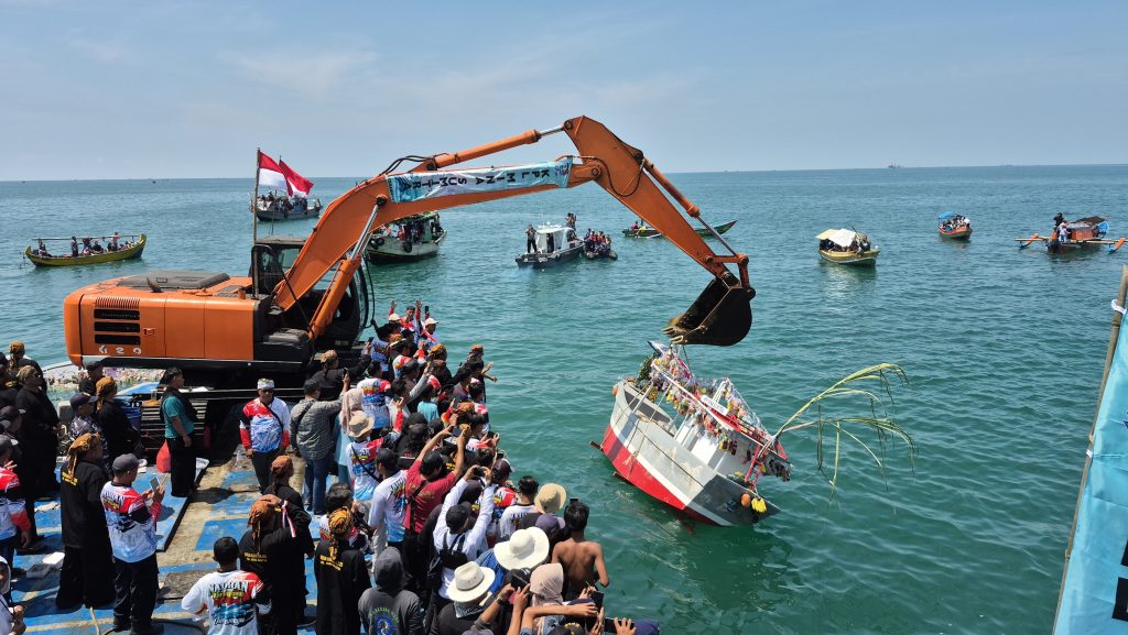 Tradisi laut Nadran Karangsong kembali digelar masyarakat dan nelayan yang berada di wilayah kerja KPL Mina Sumitra, Kabupaten Indramayu, Rabu (16/4/2025).
