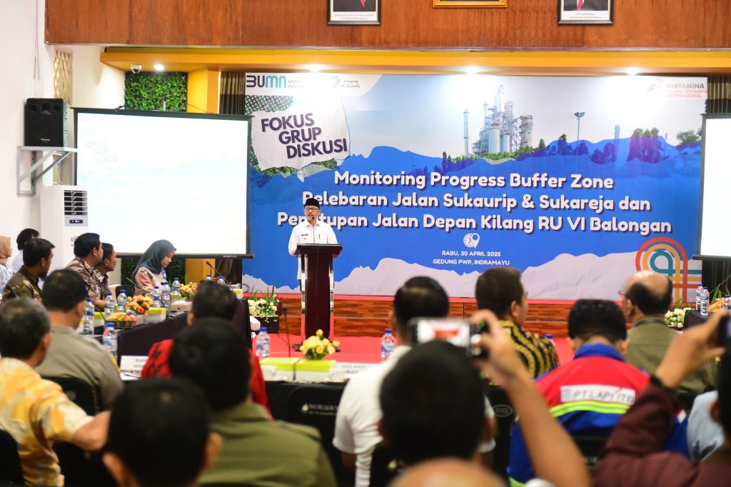 Pemerintah Kabupaten Indramayu bersama PT Pertamina (Persero) RU VI Balongan menggelar Fokus Grup Diskusi (FGD) terkait Monitoring Progress Buffer Zone Pelebaran Jalan Sukaurip & Sukareja serta rencana penutupan jalan di depan kilang RU VI Balongan. Acara berlangsung di Gedung PWP Indramayu pada Rabu (30/4/2025).