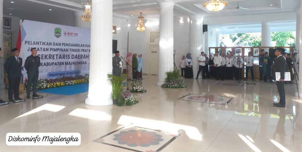 Dan pelantikan hari ini berdasarkan Surat Menteri Dalam Negeri Republik Indonesia Nomor :1.00.2.2.6/2385/SJ tanggal 06 Mei 2025 hal persetujuan pengangkatan dan pelantikan Pejabat Pimpinan Tinggi Pratama Sekretaris Daerah Kabupaten Majalaengka.