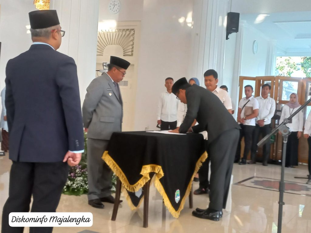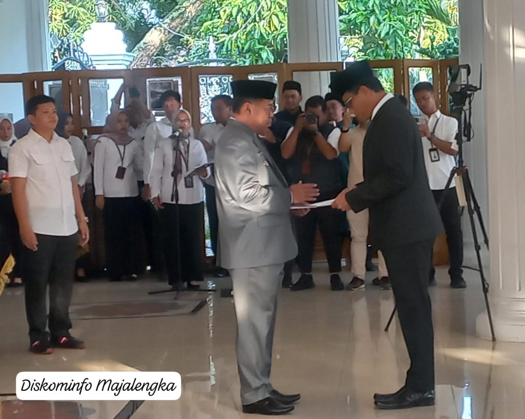 Bupati Majalengka, Eman Suherman melantik Aeron Randi, sebagai Sekretaris Daerah (Sekda) Kabupaten Majalengka, di Pendopo Gedung Negara Pemkab Majalengka, Rabu (15/5/2025).