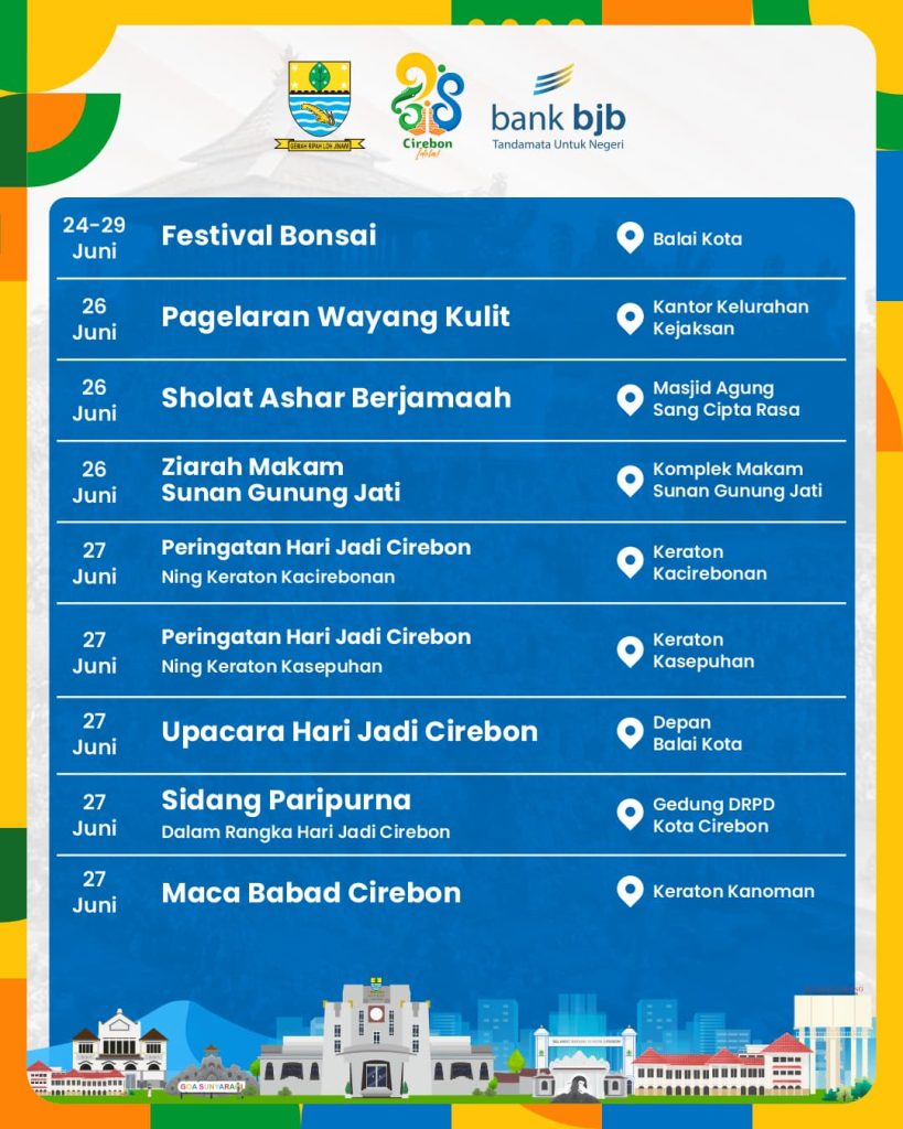 Hari Jadi ke-598 Kota Cirebon sendiri jatuh pada tanggal 27 Juni 2025, yang bertepatan dengan 1 Muharram 1447 H, menjadi momen bersejarah yang sarat makna secara budaya maupun spiritual.