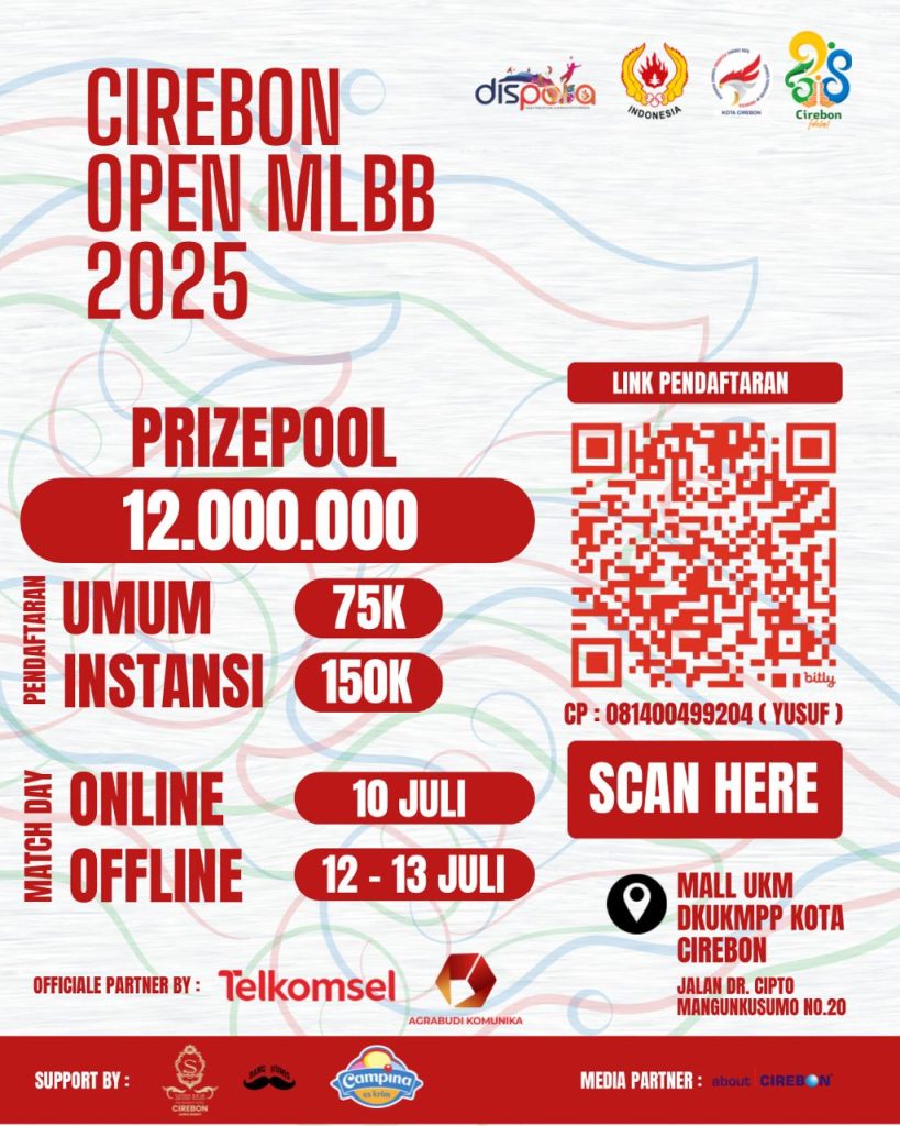 “Turnamen ini bukan sekadar kompetisi, tapi juga bentuk apresiasi terhadap generasi muda yang aktif dan kreatif di dunia digital. Kami mengundang seluruh pecinta gim di Cirebon dan sekitarnya untuk bergabung, bersaing secara sportif, dan merayakan Hari Jadi Cirebon ke-598 bersama-sama,” ujar Kukuh.