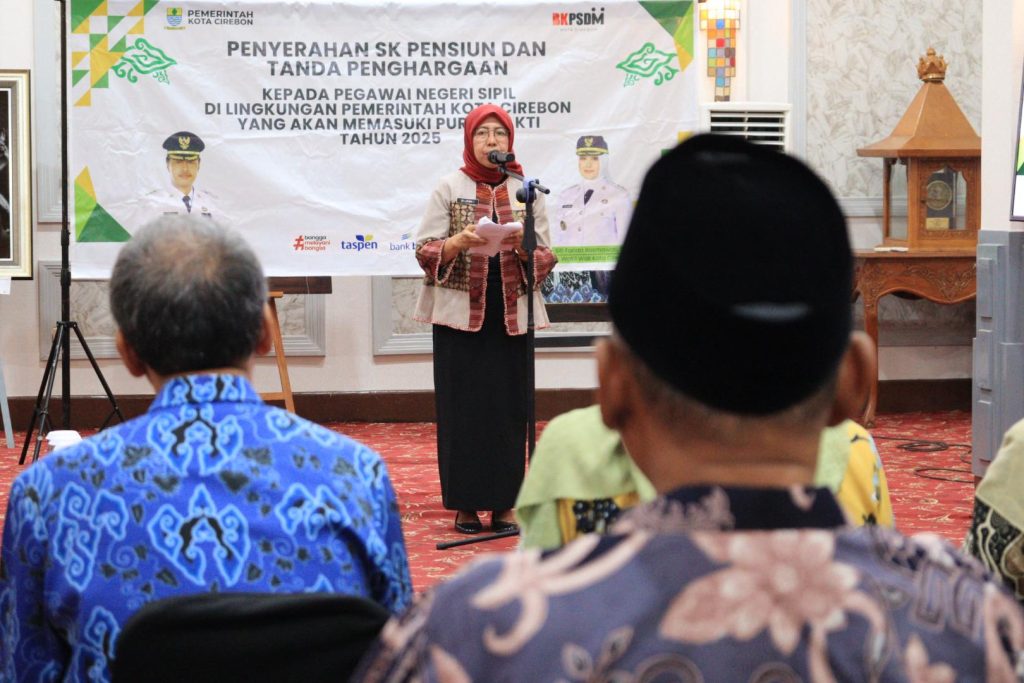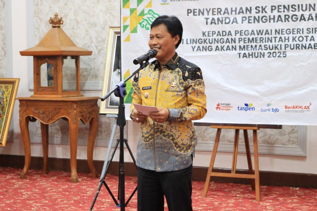 Sebanyak 22 Aparatur Sipil Negara (ASN) di lingkungan Pemerintah Kota Cirebon menerima Surat Keputusan Pensiun dan Tanda Penghargaan atas pengabdiannya, Rabu (9/7/2025). Penyerahan SK Pensiun dan Tanda Penghargaan tersebut langsung oleh Wali Kota Cirebon, Effendi Edo.