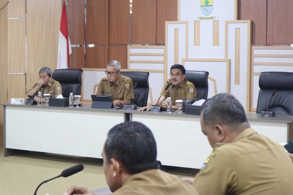 Sekretaris Daerah Kota Cirebon, Agus Mulyadi, bersama para asisten, staf ahli, camat, lurah, dan perangkat daerah terkait, mengikuti peluncuran kelembagaan 80.000 Koperasi Desa/Kelurahan Merah Putih yang diresmikan secara serentak oleh Presiden Republik Indonesia, Prabowo Subianto secara virtual, Senin (21/7/2025).
