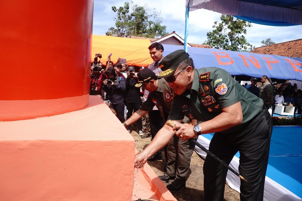 Badan Nasional Penanggulangan Bencana (BNPB) RI bersama Pusat Teritorial Angkatan Darat (Pusterad) meresmikan sumur bor sebagai sumber air bersih di Desa Jaya Mulya, Kecamatan Kroya, Kabupaten Indramayu, Kamis (17/8/2025).