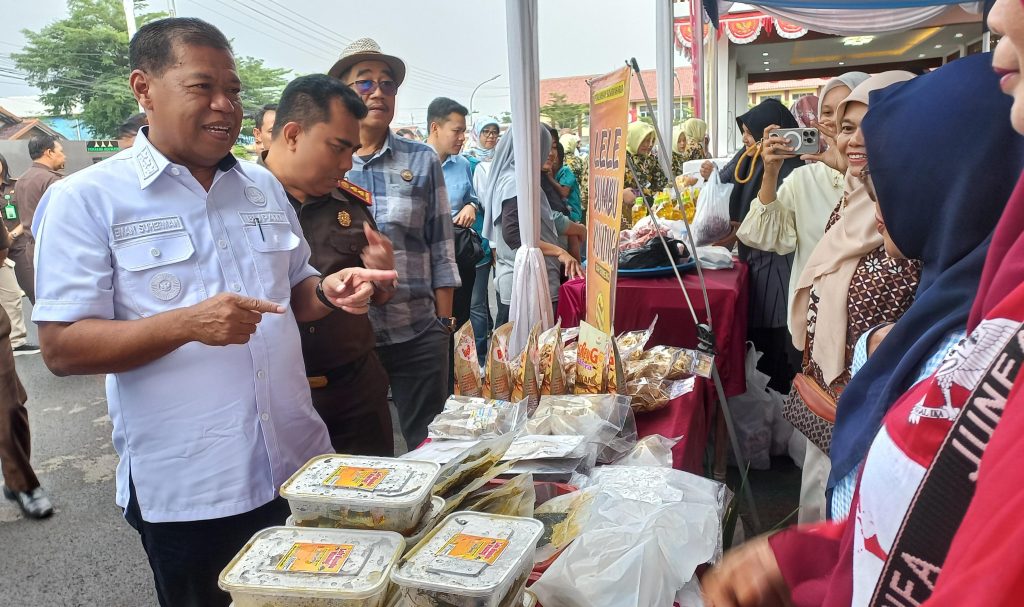 Bupati Majalengka, H. Eman Suherman menghadiri pasar murah Kejaksaan Negeri (Kejari) Majalengka, dalam rangka memperingati Hari Ulang Tahun Kejaksaan ke – 80 tahun 2025, yang dilaksanakan di halaman Kantor Kejari Majalengka, Selasa (12/08/2025).