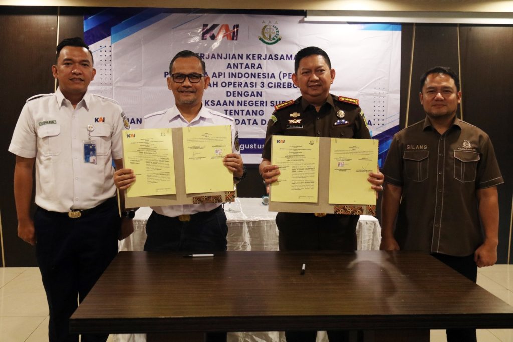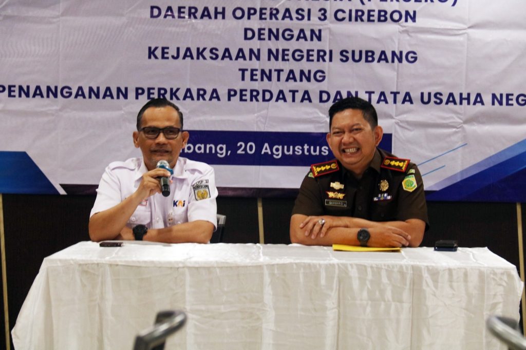 Guna mengoptimal penanganan permasalahan hukum di wilayah Daop 3 Cirebon, KAI Daop 3 Cirebon melaksanakan penandatanganan perjanjian kerjasama dengan Kejaksaan Negeri Kabupaten Subang. Penandatanganan dilakukan oleh Vice President Daop 3 Cirebon Mohamad Arie Fathurrochman dan Kepala Kejaksaan Negeri Kabupaten Subang, Dr. Bambang Winarno, S.H., M.H.
