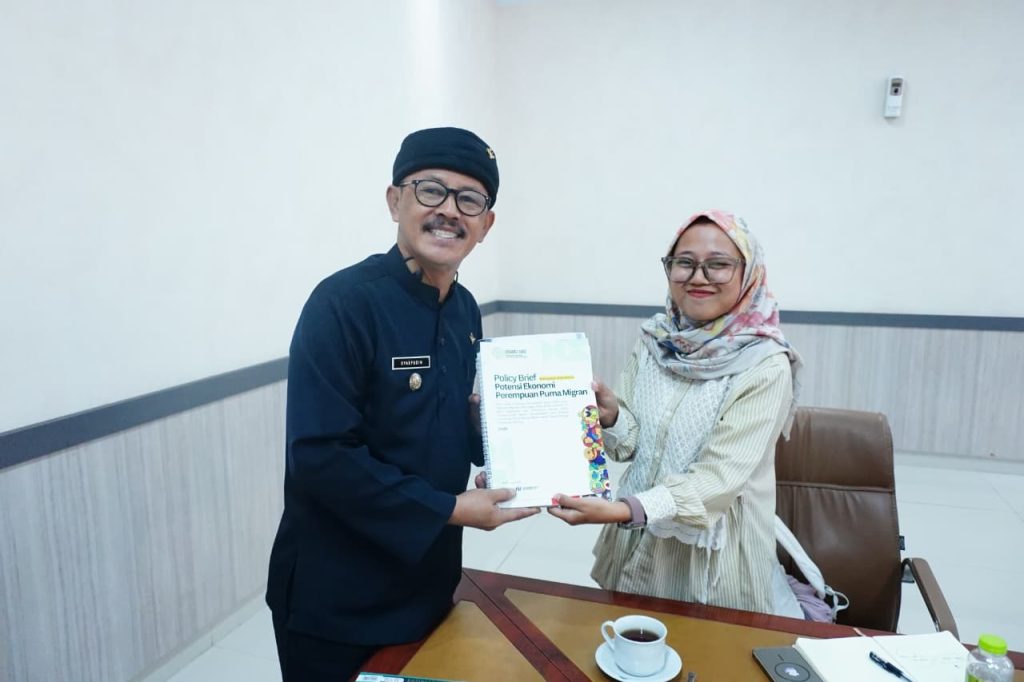 Dalam kesempatan tersebut, Migrant Care menyerahkan hasil survei lapangan beserta contoh implementasi desa migrasi aman di Desa Juntinyuat kepada Wakil Bupati Syaefudin.