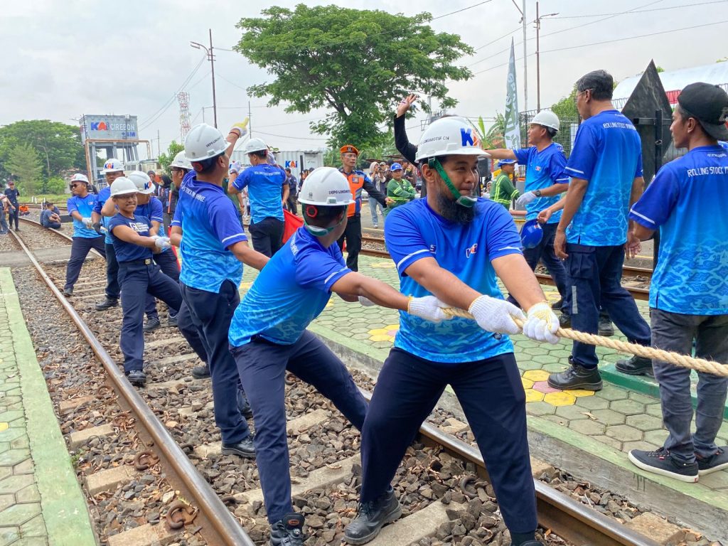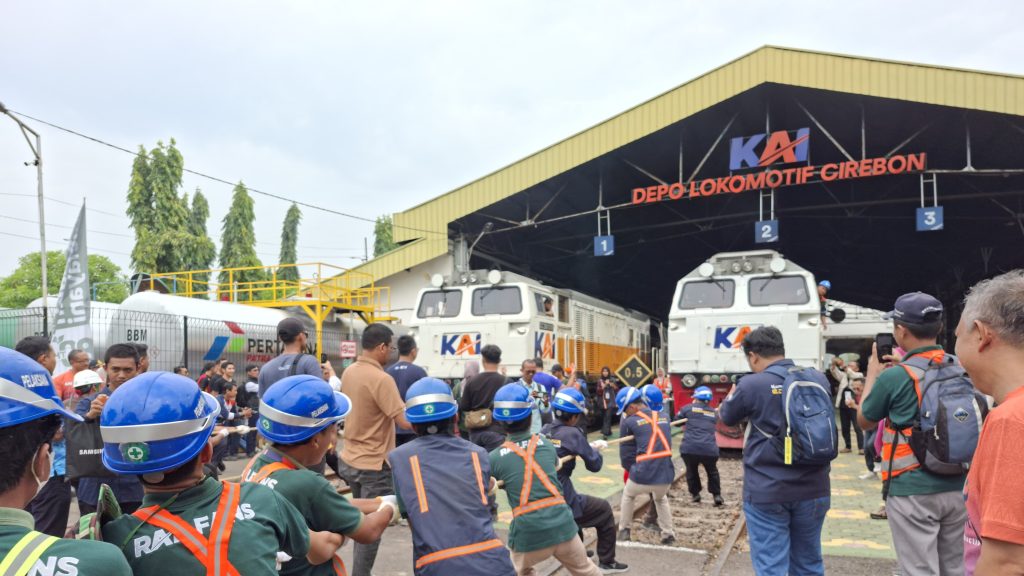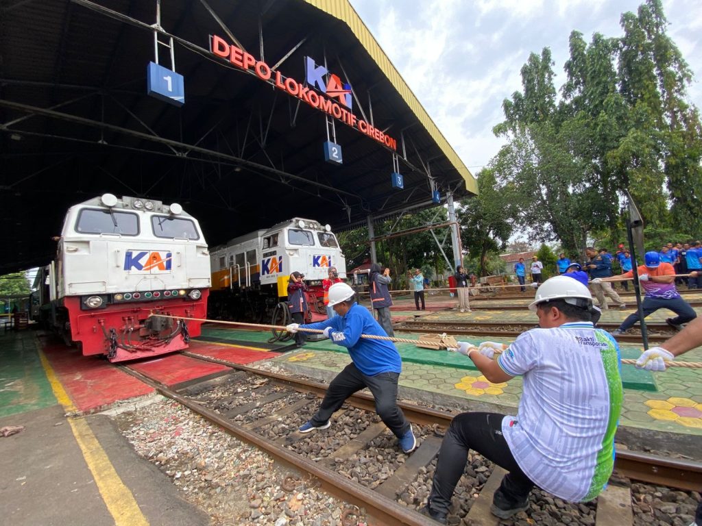 Dalam rangka memperingati Hari Ulang Tahun ke-80 Kereta Api Indonesia, KAI Daop 3 Cirebon menggelar lomba tarik lokomotif bertempat di Unit Pelaksana Teknis Depo Lokomotif Cirebon pada Kamis (18/9). Kegiatan yang berlangsung meriah ini diikuti oleh para pekerja KAI Daop 3 Cirebon dan dari eksternal diantaranya dari Dinas Perhubungan Kota Cirebon dan Komunitas pecinta kereta api.