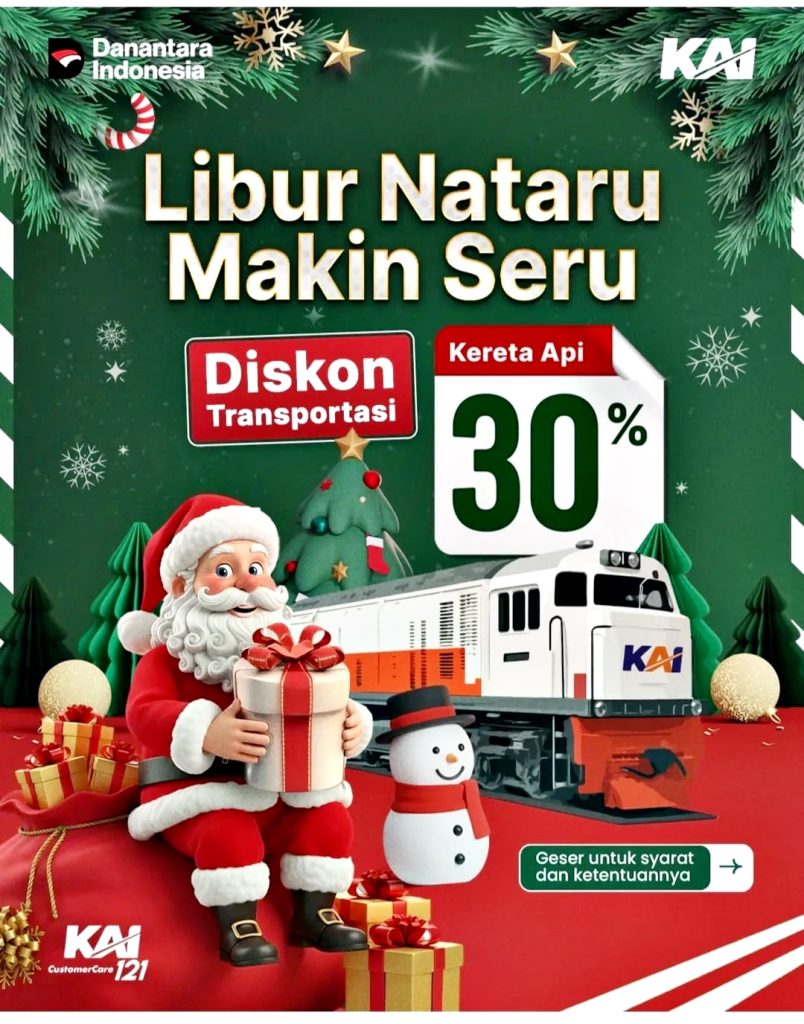 “Pada libur Natal dan Tahun Baru kebutuhan masyarakat akan transportasi sangat tinggi. Dengan program ini masyarakat akan mendapatkan kemudahan dan lebih hemat dalam melakukan perjalanan menggunakan kereta api,” kata Muhibbuddin.